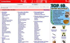 Pez dispensers are typically considered collector items, so the Collectibles category is a good place to start browsing. If we click on the Collectibles link on the homepage, we end up at a page listing all of the Collectibles subcategories.